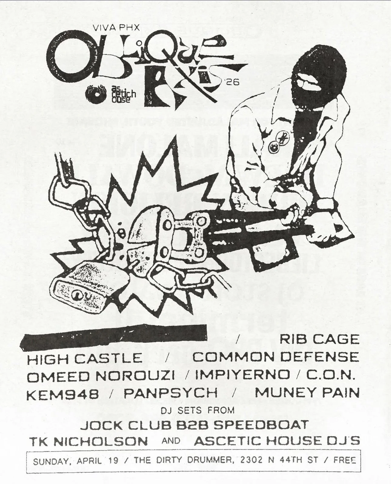 Oblique Axis Sunday: Ascetic House Takeover | 9pm-2am April 19