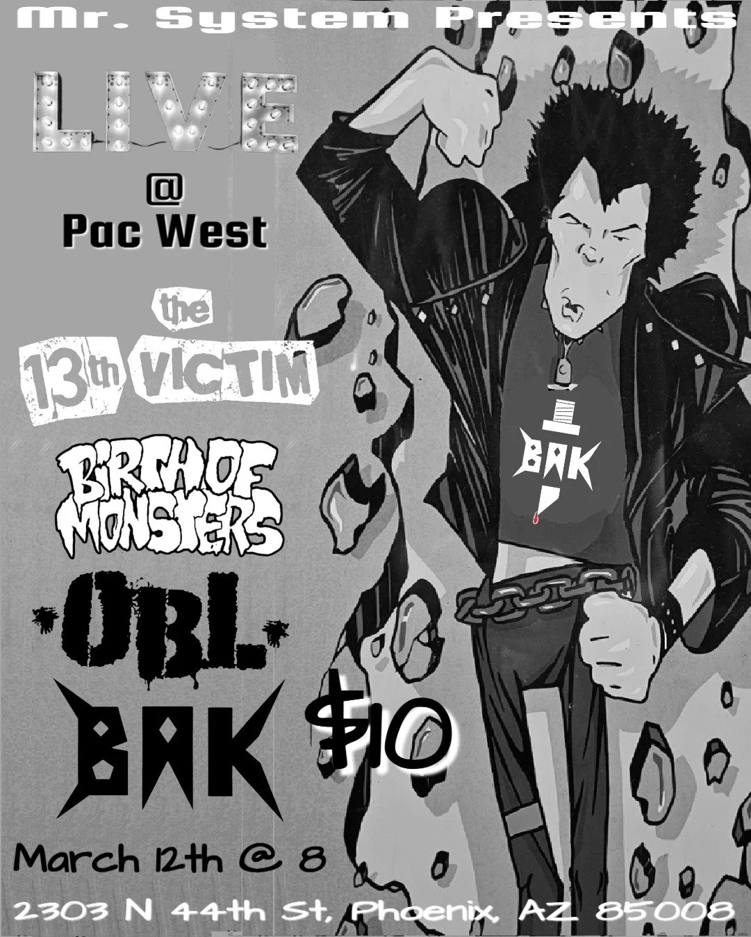 Catch The 13th Victim, Birth of Monsters, OBL, and BAK live at The Dirty Drummer for just $10! The show goes down in Pac West, our side bar. Killer bands, strong drinks, and a night of pure energy—don’t miss it!